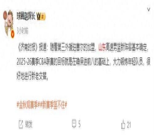 正式确定!山东男篮只找三名外援,新赛季目标八强