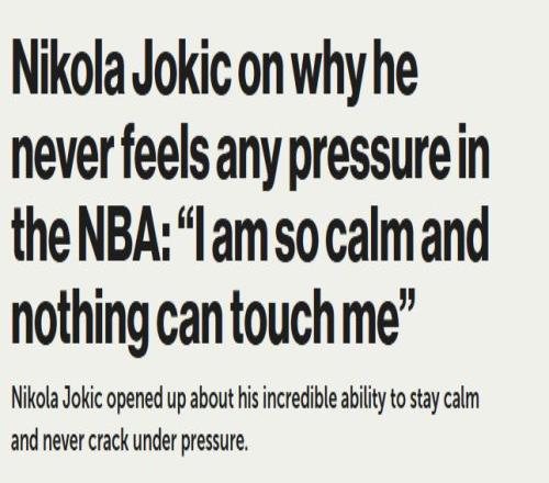 久而久之,人们逐渐发现,没有什么能给约基奇带来压力,尤其是在球场上。无论赛事胜负攸关,约基奇始终保持云淡风轻的态度,这也让他在NBA赢得了一种独特的认可与尊重。