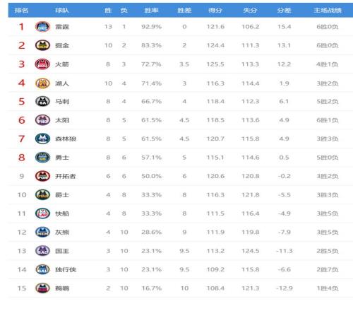 今日比赛后马刺、太阳、森林狼排名互换,其他西部球队排名不变。
