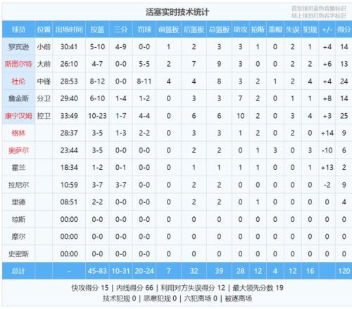 老鹰和活塞都不是流量大队,但这场对决真的精彩。最后看看数据: