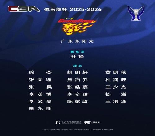 广东男篮全华班出战俱乐部杯 刺猬篮球 2025-11-26 01:59:49 距离 第二届CBA俱乐部杯小组赛开打还有一周, 湖北武汉赛区(D组)名单出炉。广东、辽宁等队均以全华班出战,升上一队的王洪泽、陈家政在列,崔永熙、焦泊乔也将迎来宏远首秀。图源:运动家频道关注 / 在看 宏远CBA俱乐部杯广东男篮 上一篇: 手滑段睿骐疑似点赞加盟广东队采访自曝目前状态“感觉非常好”下一篇: CBA官方:新赛季00后球员197人占比58,31岁以上球员29人占比9%